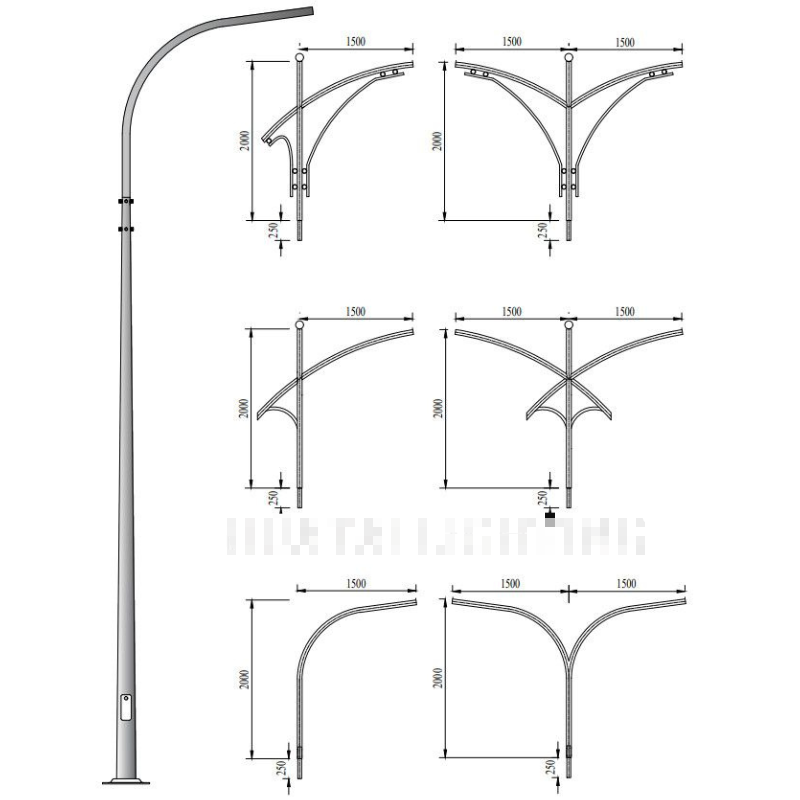 Конфигурация кронштейна: Прямой, изогнутый или специальный художественный дизайн. Цветовая гамма: Любая в соответствии с RAL. Интеграция бренда: Печать логотипа/лазерная гравировка. Интеграция аксессуаров: Монтажные кронштейны для вывесок, камер, датчиков.